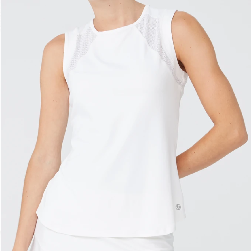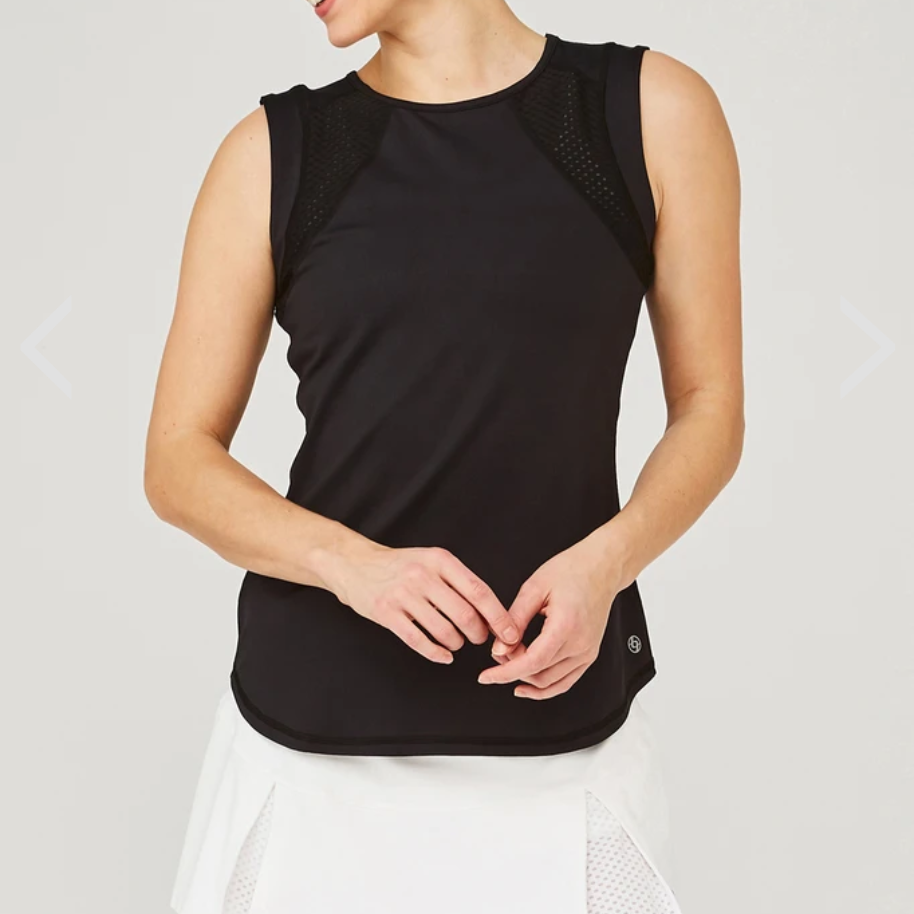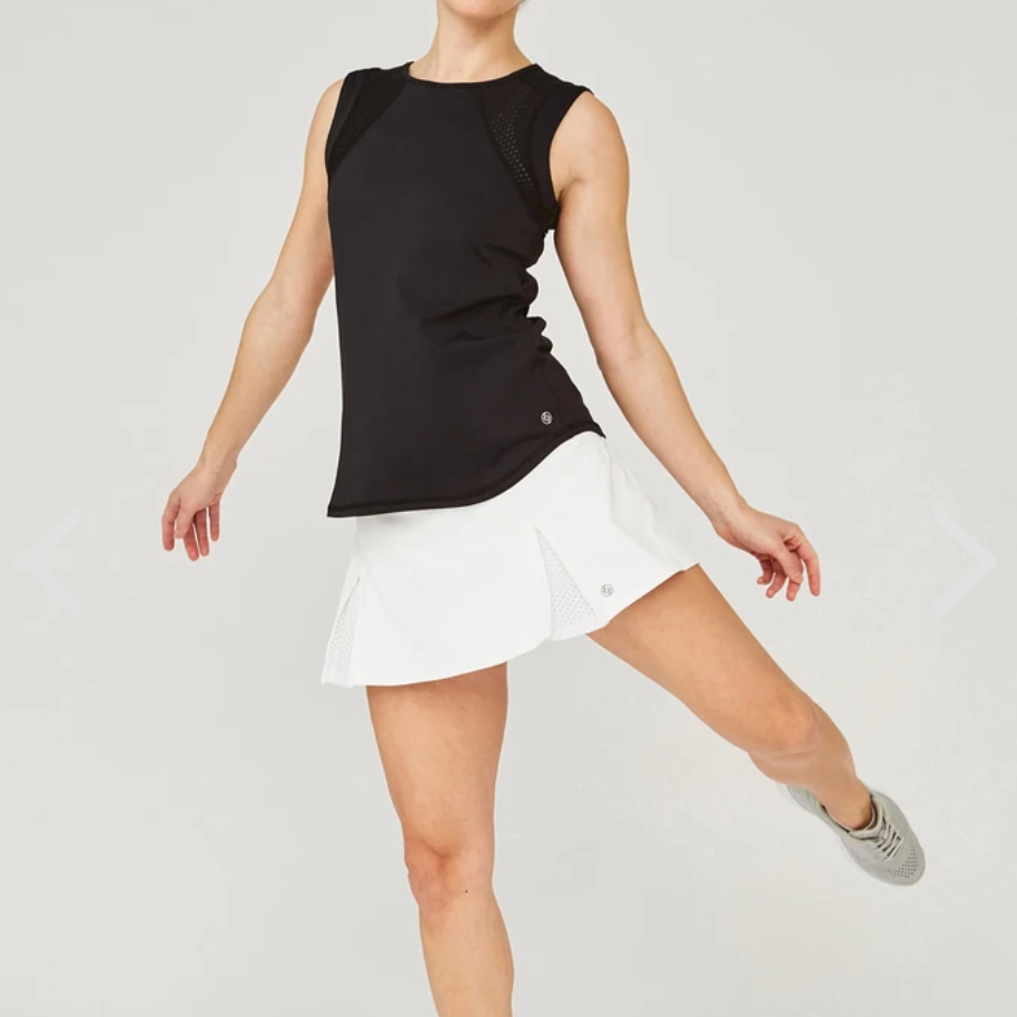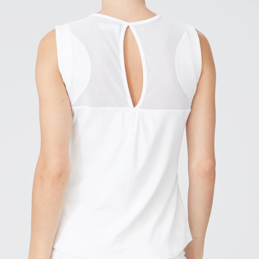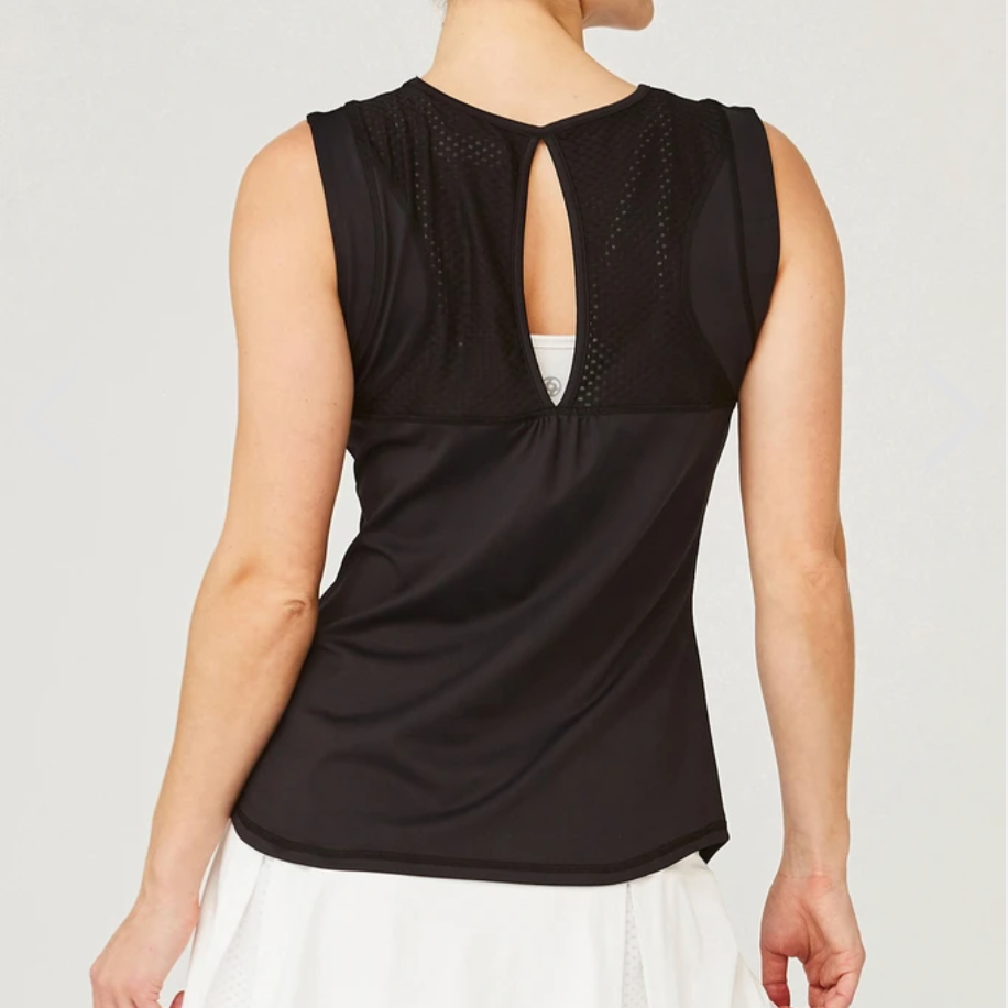 One of the best tanks in the LIJA Collection. This lightweight, body skimming tank has wide tank straps, mesh paneling on shoulder seams and upper back. The back panel has a keyhole opening and slight gathers for a feminine touch.